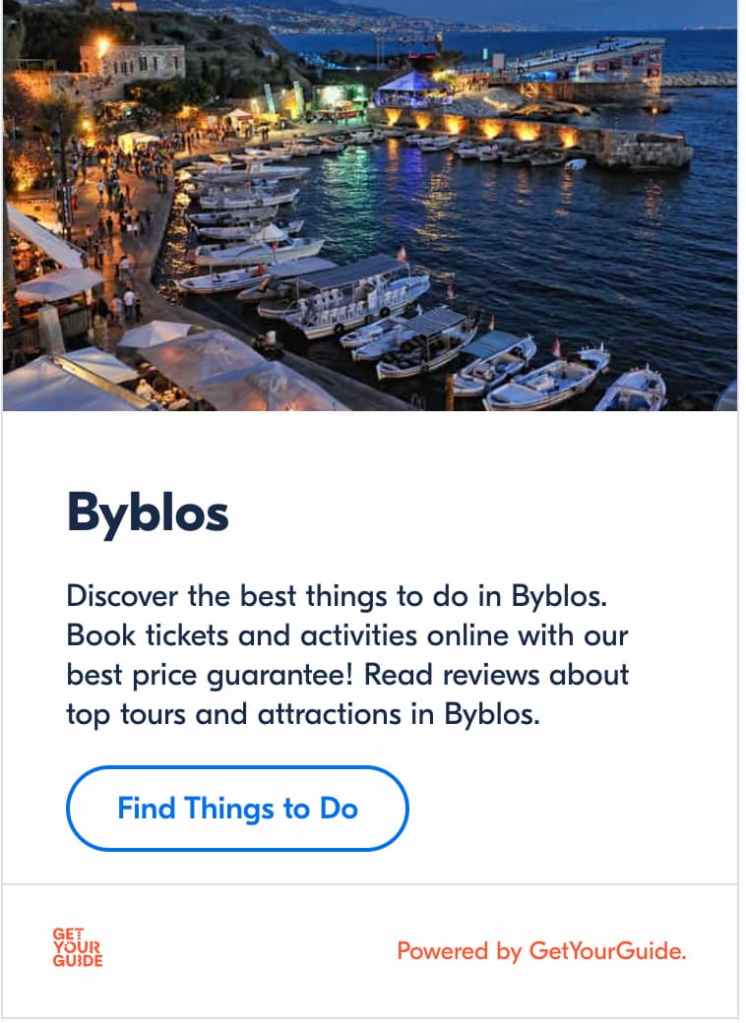 - GetYourGuide – Byblos Day Trips: A reliable platform for booking guided tours that often combine Byblos with the Jeita Grotto and Harissa.