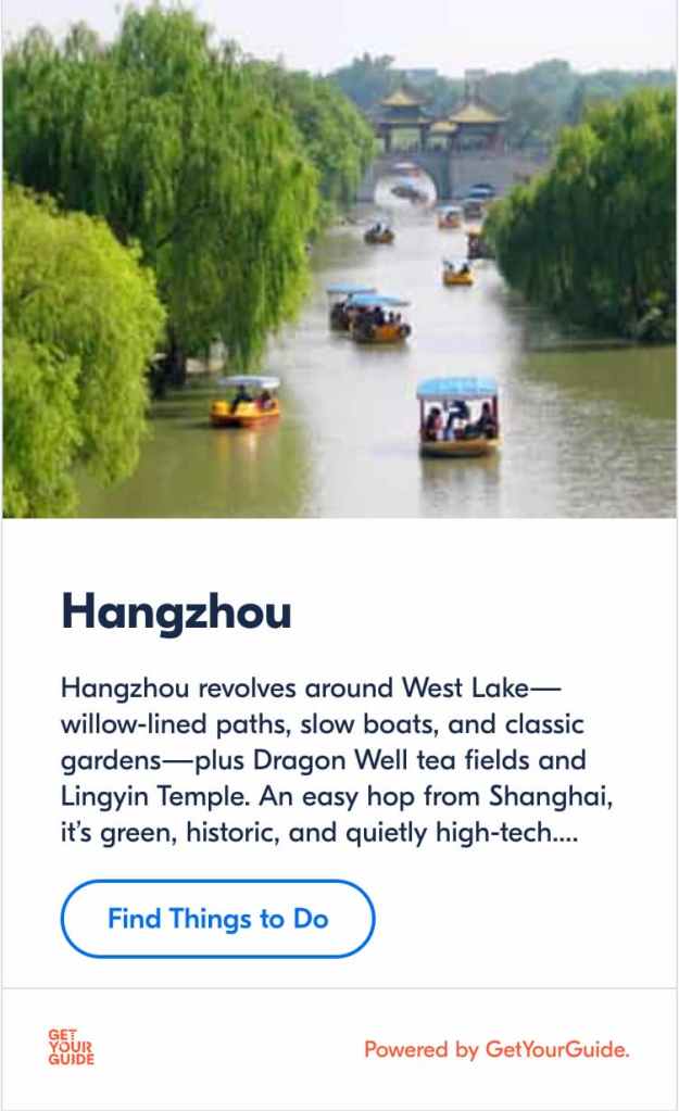 - Trip.com – Liangzhu Tours: Useful for booking guided day trips from Hangzhou city center or nearby attractions.