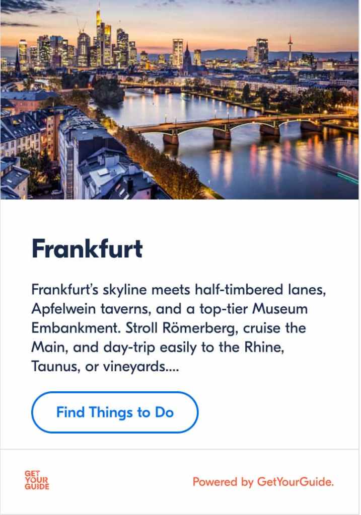 - Viator – Frankfurt Day Trips: Useful for booking organized transport and guided day tours departing from Frankfurt.