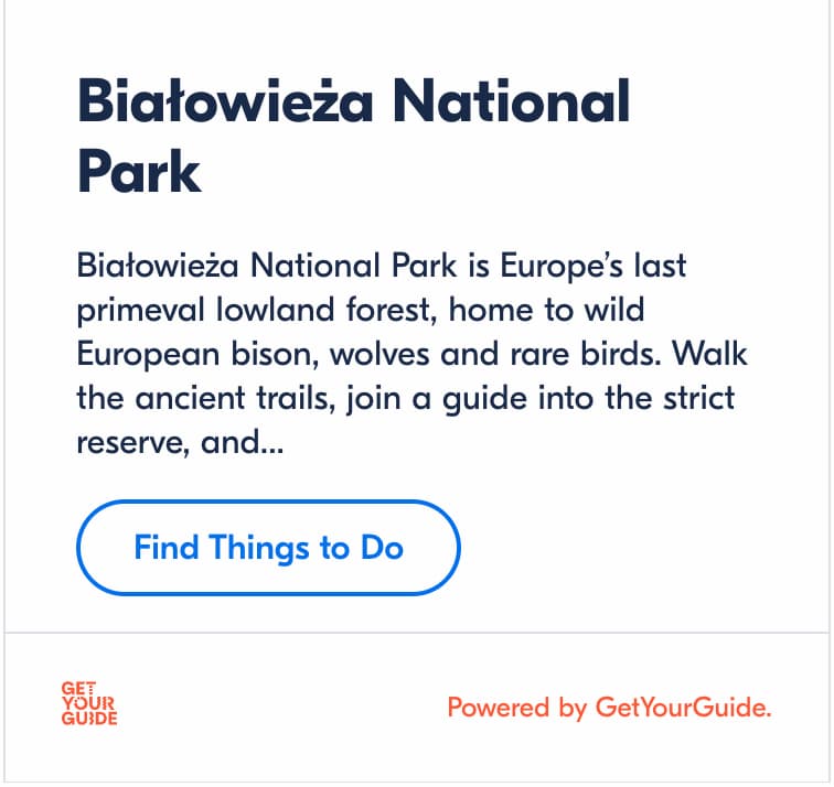 - GetYourGuide – Białowieża Tours: Platform to book guided wildlife safari tours and day trips from nearby cities.