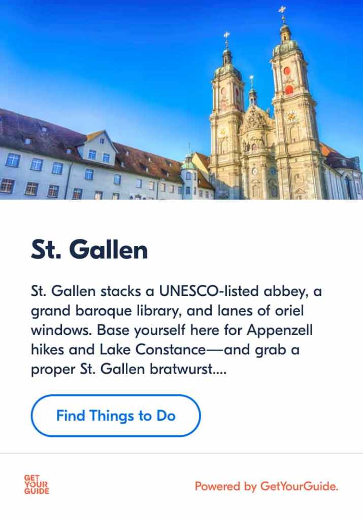 5. Viator – St. Gallen Day Trips: Useful for booking private guided walking tours or organized transport from Zurich.