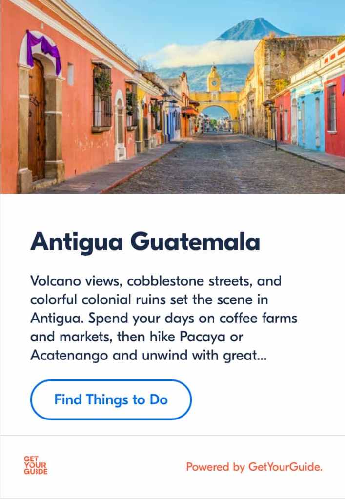 - Viator – Antigua Guatemala Tours: Use this to book guided volcano hikes, coffee plantation tours, or transfers from La Aurora Airport.
